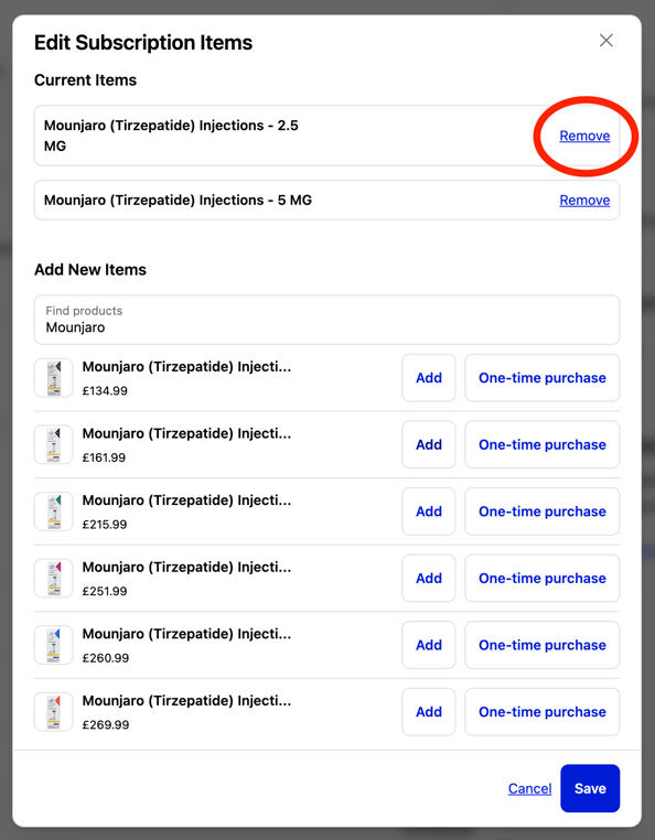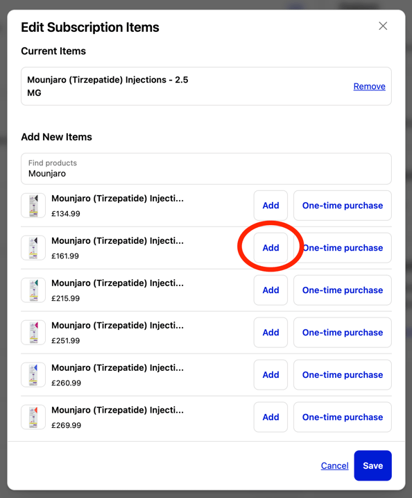 Select Add Item and choose your new dose.