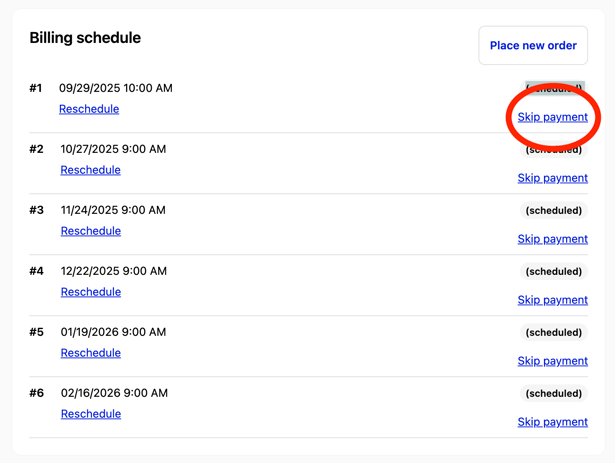 Click Skip Payment next to the order you want to skip.