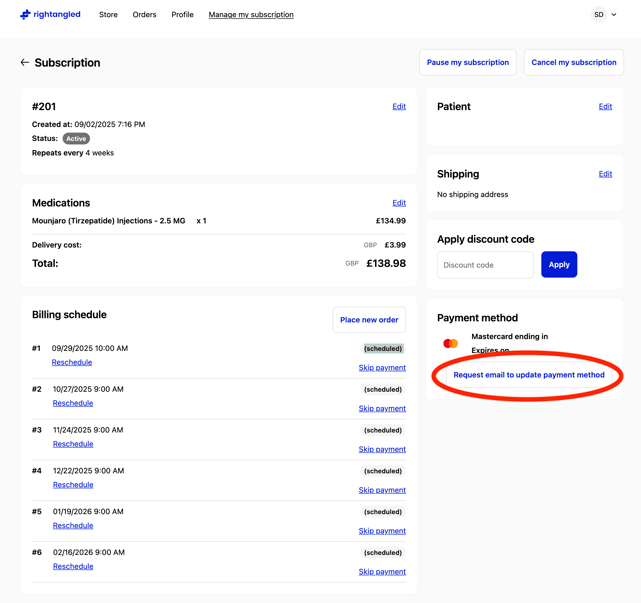 Follow the secure link sent to your inbox to update your card details.