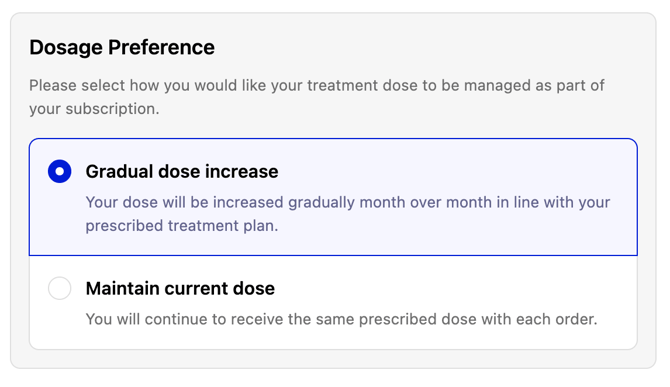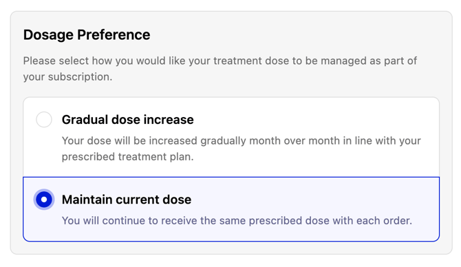 Your medication dose automatically increases every 4 weeks as part of a structured treatment plan. The Auto-Titration service is added alongside your medication (shown as £0.00 in your portal) and adjusts your dose for you.