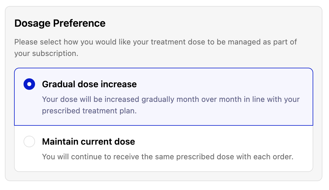 Your medication stays at the same dose every 4 weeks. No automatic changes are made unless you choose to update your dose manually in your account.